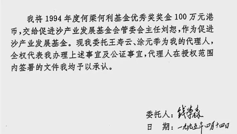 钱学森淡泊名利,品行高洁,一生中多次捐献稿费、讲课费和奖金,最大的一笔为100万元,这笔巨额奖金甚至没有经过他的手,就直接委托秘书捐给促进沙产业发展基金会。